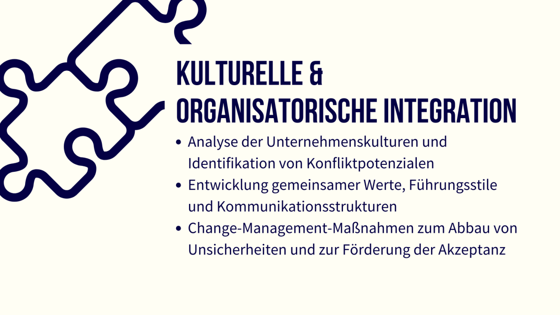 Eine erfolgreiche Integration ist entscheidend, um geplante Synergien zu realisieren, den laufenden Geschäftsbetrieb stabil zu halten und den Wert des Unternehmens entsprechend der Vorstellungen des "Deals" zu steigern.
